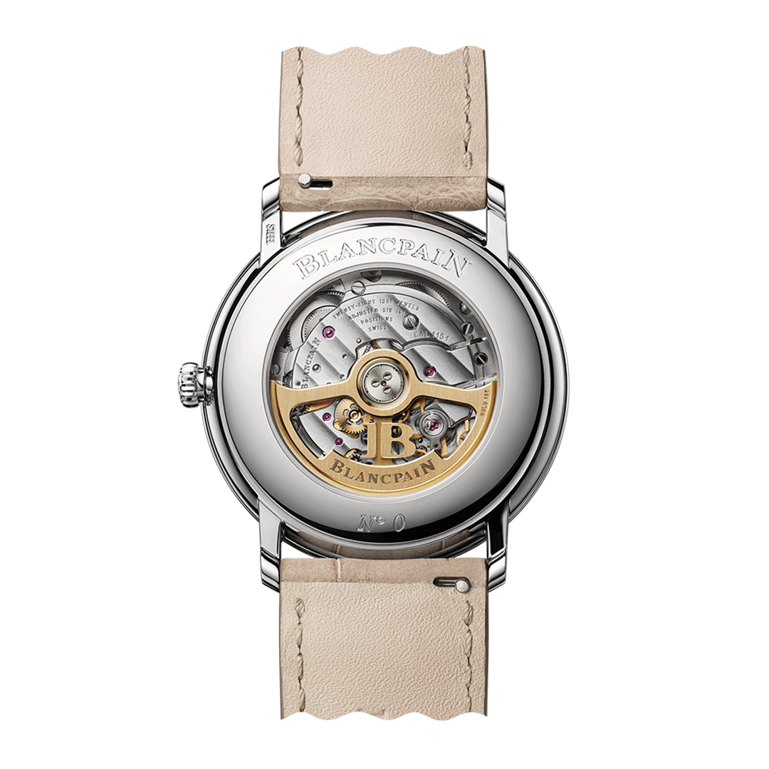 The Villeret collection epitomises Blancpain’s devotion to classical watchmaking traditions while embracing the most refined advancements in horological craftsmanship. This Ultraplate model showcases purity of design, elegant proportions and remarkable technical finesse, enhanced by meticulous finishing and refined mechanical performance.