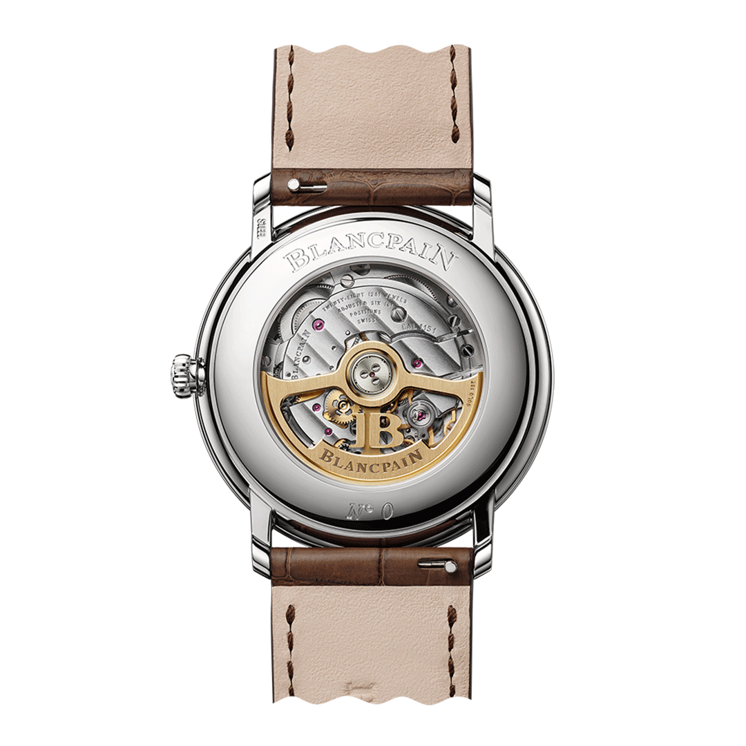 The Villeret collection continues to reflect Blancpain’s commitment to classical watchmaking elegance, fused with subtle modern technical innovation. This Extraplate model features a stainless steel case paired with a refined brown-gold dial and an alligator strap — combining understated sophistication with high performance.