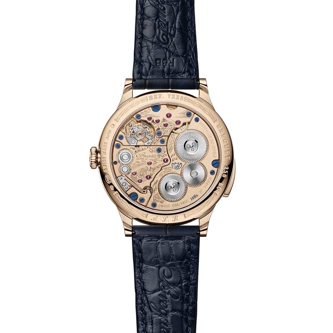 Visible through the sapphire case-back is calibre 74SC, manual-winding, beating at 72,000 vph (10 Hz), delivering a 60-hour power reserve and certified accuracy of ±1 second per day. The magnetic pivot system transforms magnetism from foe to asset, maintaining balance-staff stability and enhancing chronometric performance. The Classique 7225 is an emblem of technical mastery and heritage—where the spirit of Abraham-Louis Breguet meets 21st-century precision.