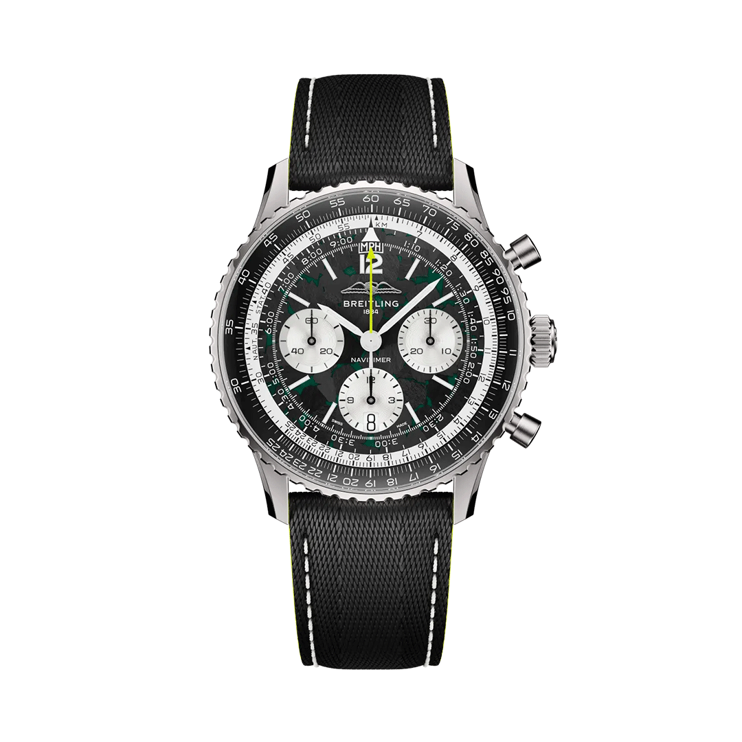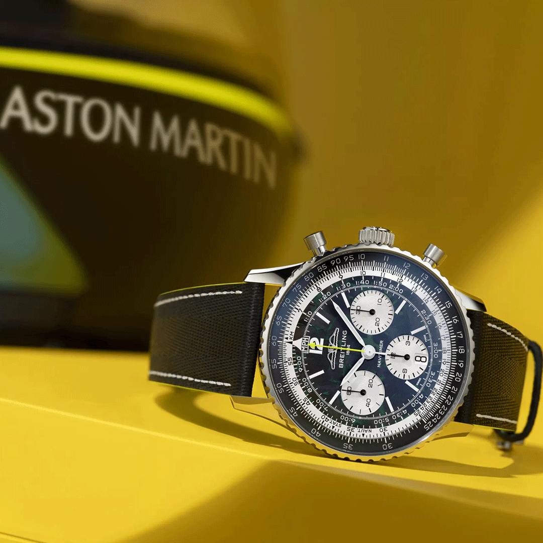 The partnership between Breitling and Aston Martin Aramco Formula One™ Team comes to life in a Navitimer conceived for a world where milliseconds matter.