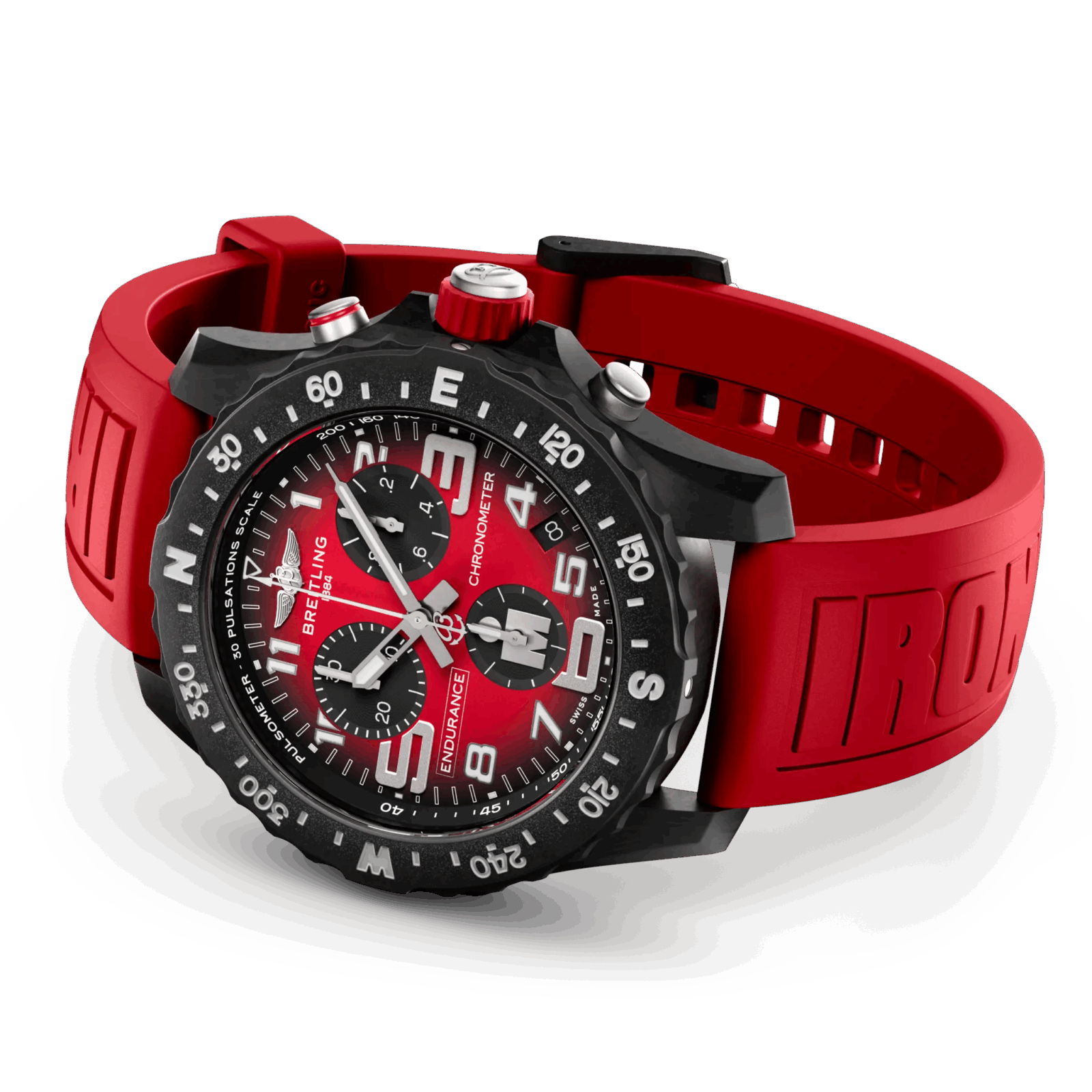Breitling’s IRONMAN® edition lightweight Endurance Pro watch. Designed for men and women whose active lives blend a professional mindset with a sporty lifestyle, the Endurance Pro is equal to the challenges of a rigorous workout but fashionable enough for everyday wear.