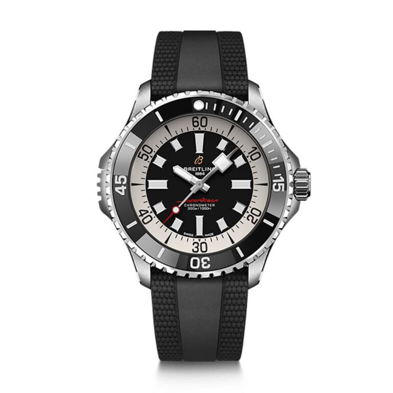 For safety, the bezel is uni-directional on most sizes and bi-directional with a patented lock on the 46 mm. This watch is also shock-, sand- and saltwater-resistant. Its automatic Breitling Caliber 17 comes with a two-year warranty and approximate 38-hour power reserve.