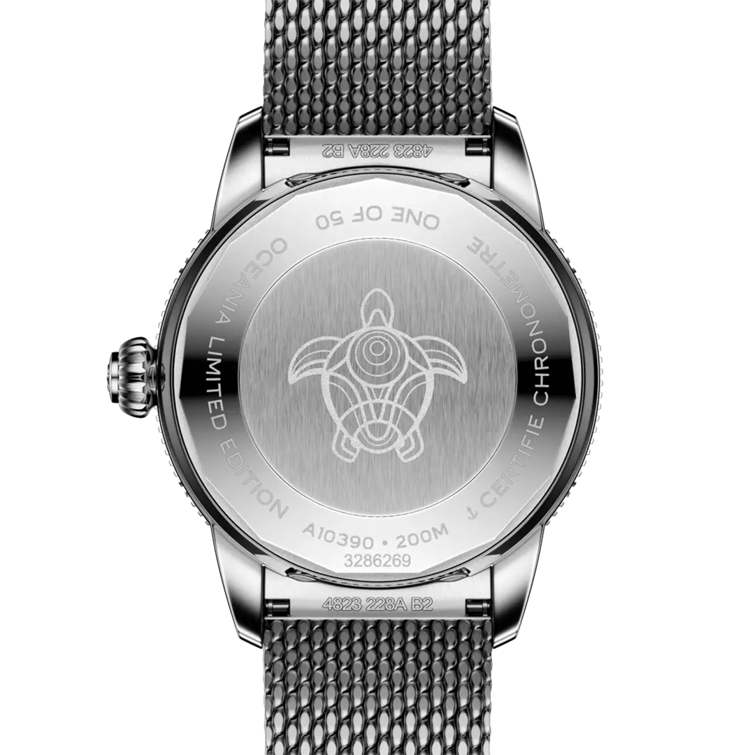 Powered by the Breitling Calibre 10 self-winding mechanical movement, this timepiece ensures reliable precision with a practical power reserve. Designed for both ocean exploration and everyday elegance, it offers robust water resistance alongside a balanced and versatile 36 mm profile.