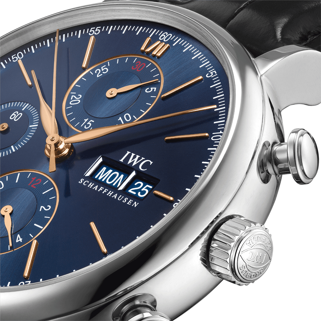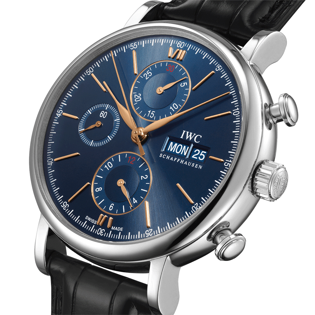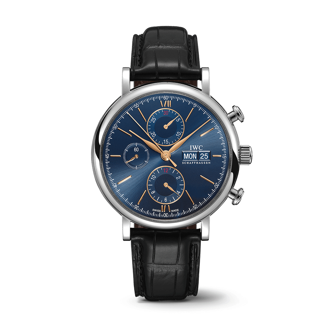 For the first time, the Portofino Chronograph is offered in an unlimited version with a stainless steel case and a blue dial.