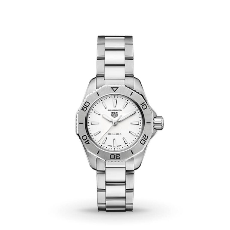The TAG Heuer Aquaracer is built for everyday use. A true tool watch with versatile style, ready to help you overcome your personal limits. This 30mm model stands out with a shimmering silver dial and unmistakable boldness.