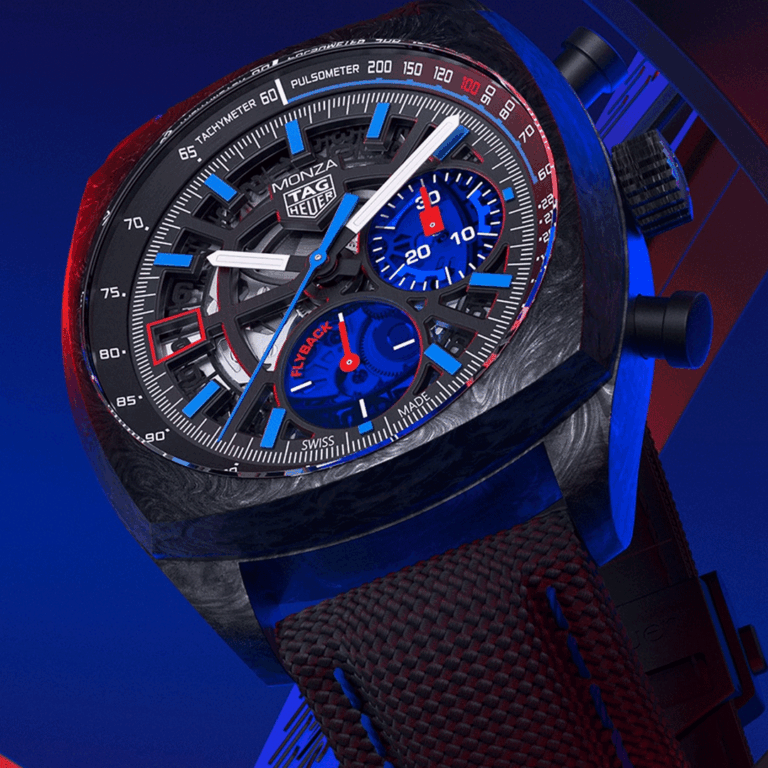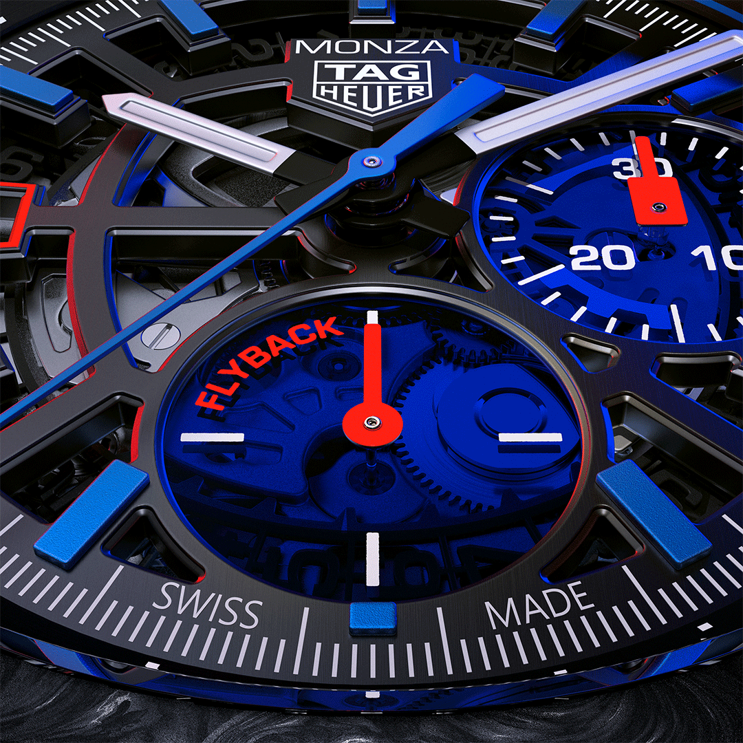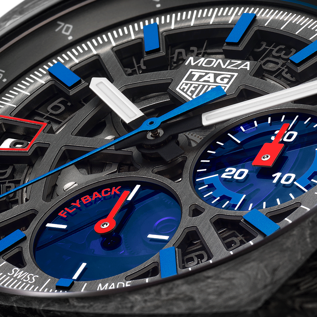 Monza returns in a contemporary tribute to the indelible link between TAG Heuer and competition motorsport: this striking carbon rendition with an extreme sports look embodies the very essence of the Maison. The 42-mm case, made of ultra-lightweight and resistant carbon, is powered by the Manufacture Calibre TH20-12 Flyback, a chronograph movement with COSC certification. A watchmaking statement.
