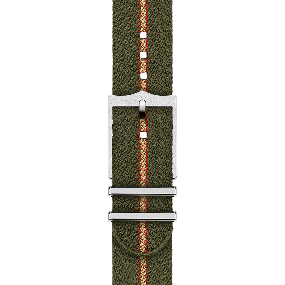 Bracelet – Green fabric bracelet with red and beige stripes and buckle