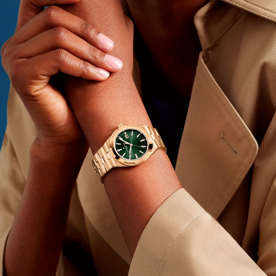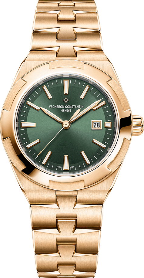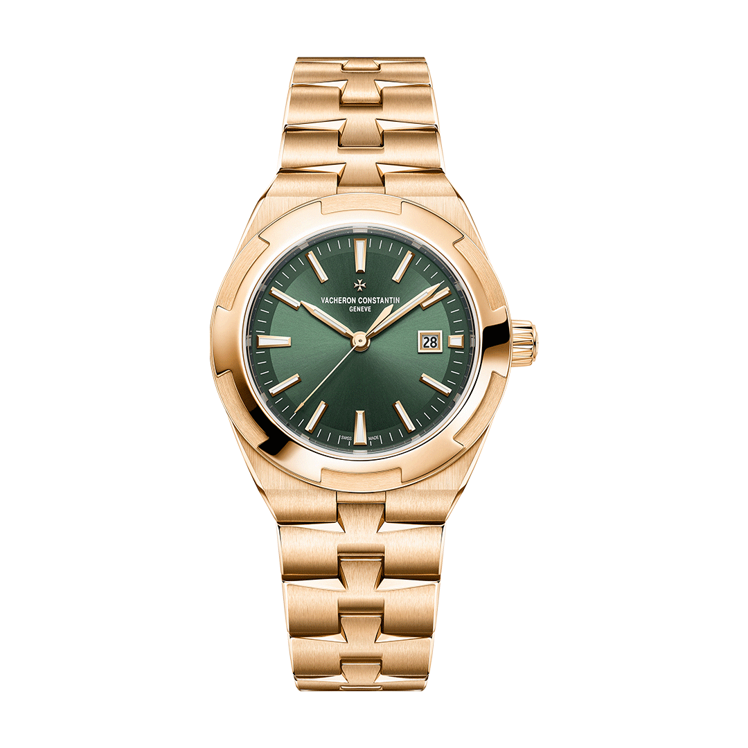 A blend of refined sportiness and contemporary elegance, the Overseas self winding model in 34.5 mm embodies the spirit of travel that defines the collection. The pink gold case and signature Maltese cross inspired bezel frame a deep green lacquered dial with sunburst finishing, delivering both vibrancy and sophistication. With its interchangeable strap and bracelet system, this model adapts effortlessly to any occasion, while the calibre 1088/1 ensures precision, reliability and everyday versatility.