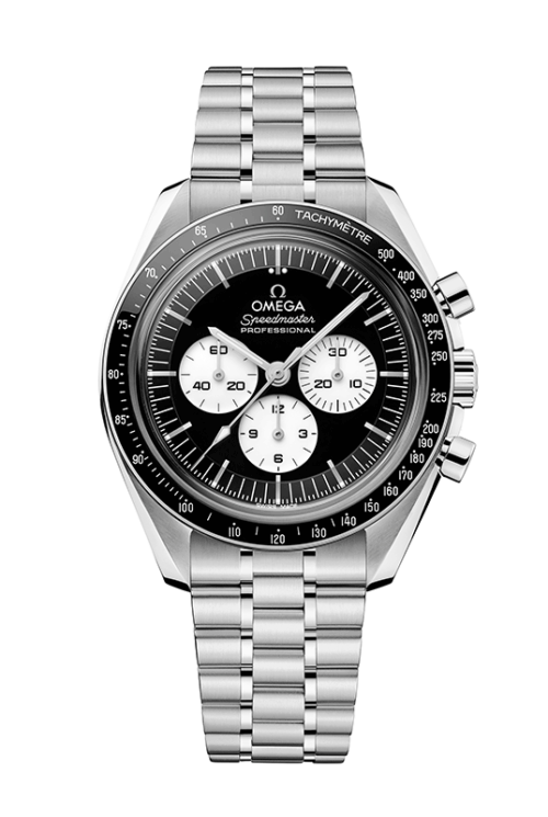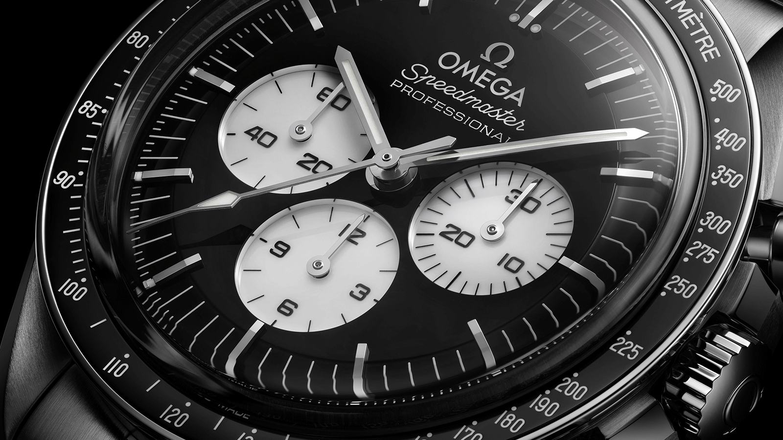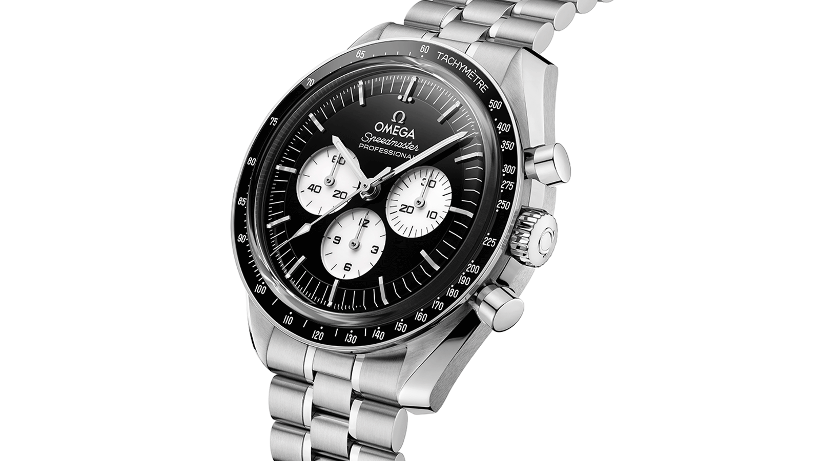 With its unmistakable black dial, white chronograph counters and classic tachymeter bezel, the Speedmaster Moonwatch remains one of the most balanced and purposeful designs in watchmaking. The new inverted dial configuration enhances this iconic layout by sharpening contrast and clarity, giving the watch a more contemporary presence while preserving its heritage. The signature step dial adds dimensionality, allowing light to play across the polished surfaces and bringing new visual energy to the familiar Moonwatch silhouette.