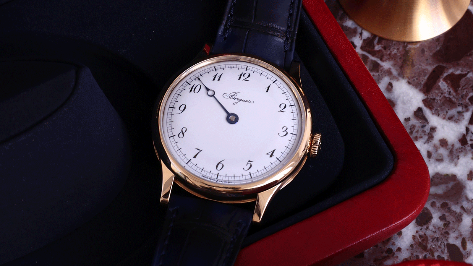 The 2025BH/28/9W6 is presented in Breguet gold with a refined silvered-gold dial, engine-turned by hand and finished with the Maison’s secret signature between 11 and 12 o’clock. The single blued-steel hand sweeps across Arabic numerals in Breguet’s classical typography, expressing time as a continuous gesture rather than a succession of moments.