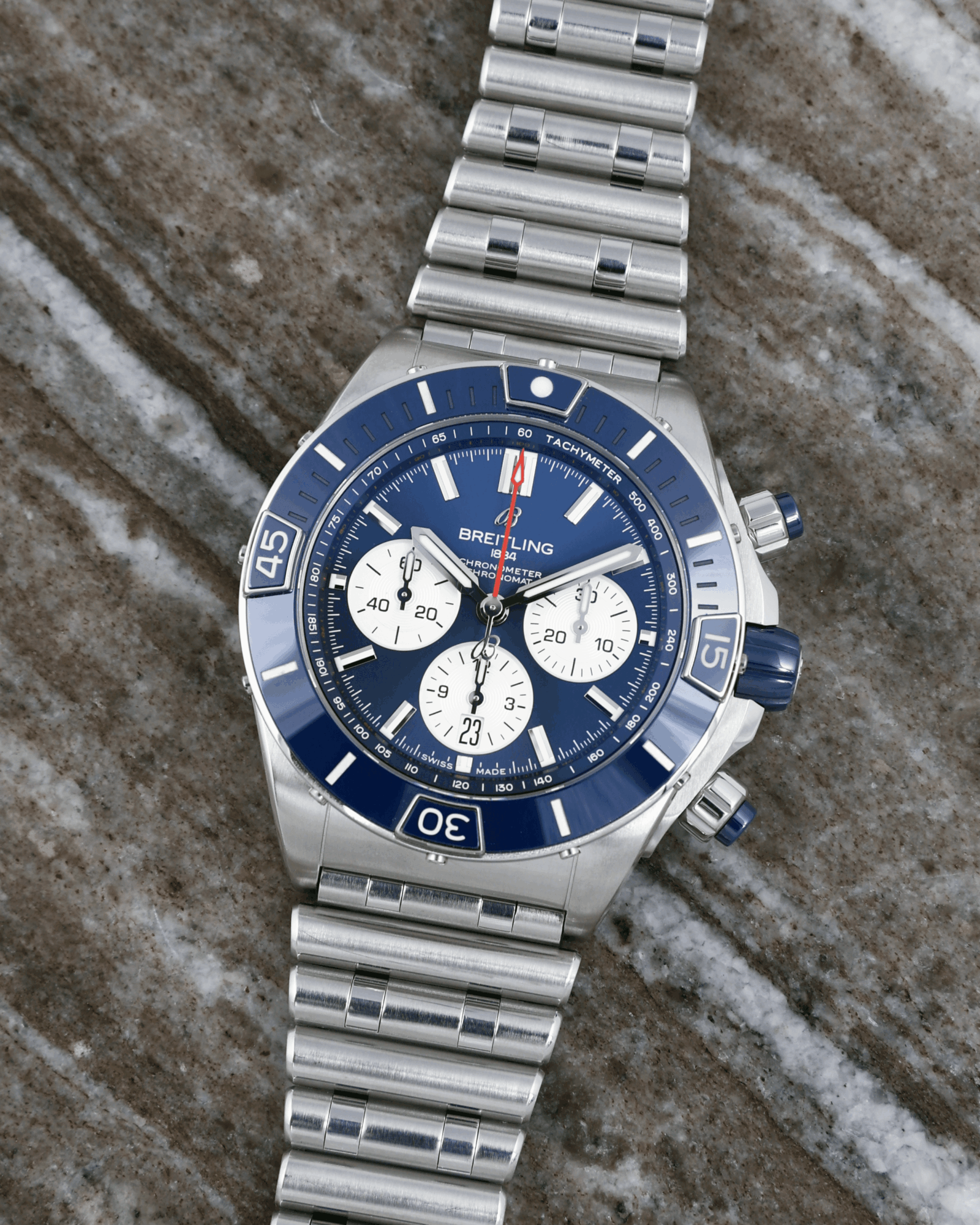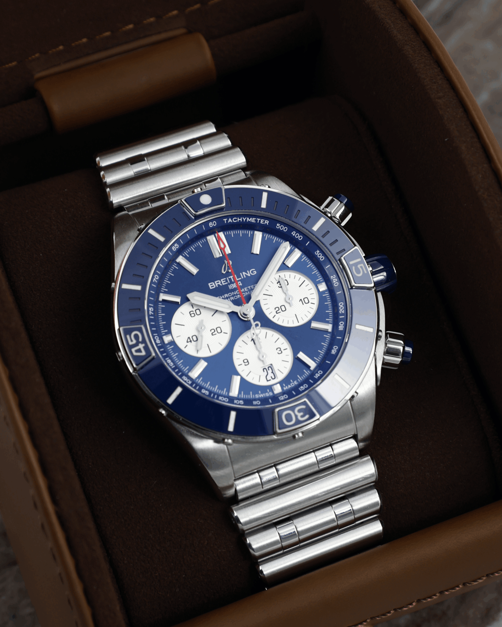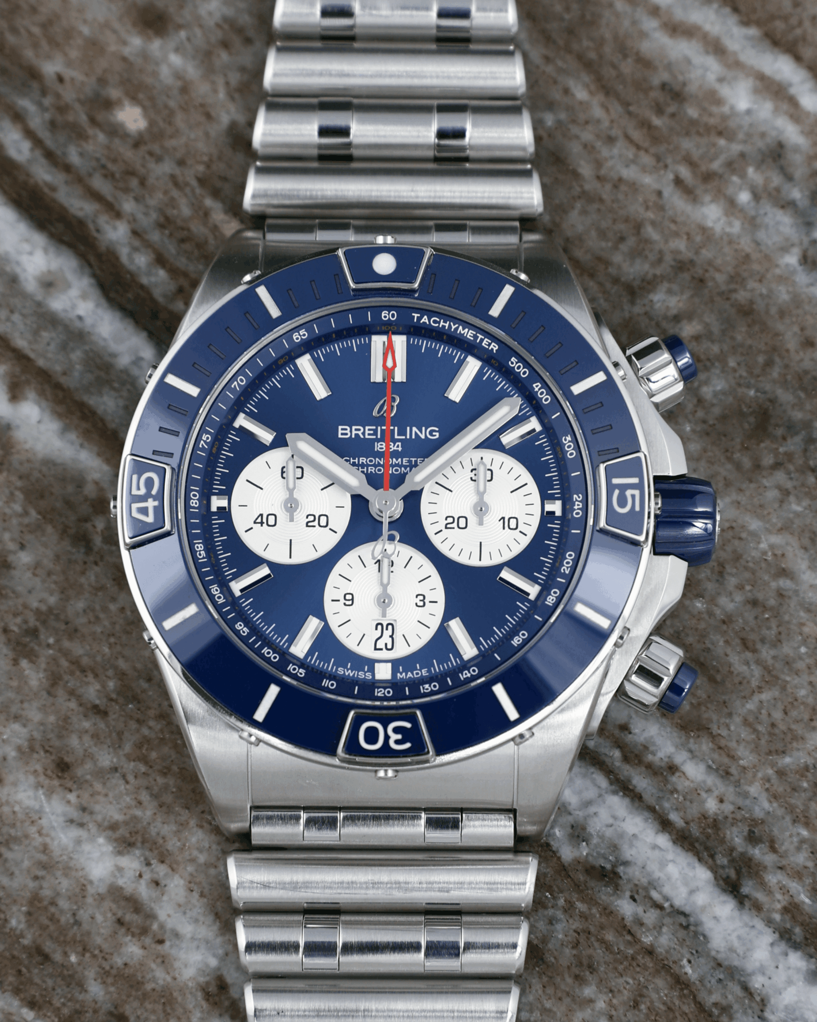 This timepiece is delivered as a full set in excellent condition, with BREITLING international warranty until mid 2026.
