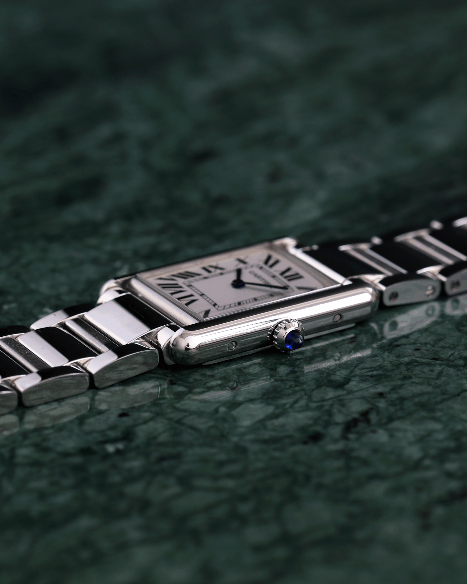 WSTA0092CartierDesigned by Louis Cartier in 1917, the Tank watch is an icon of modern watchmaking. The sleek design of this wristwatch, combining geometry with accurate proportions, defines its bold identity.